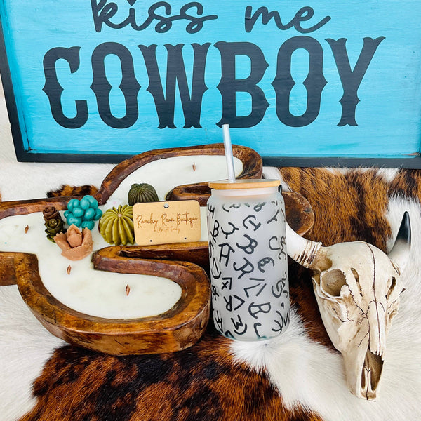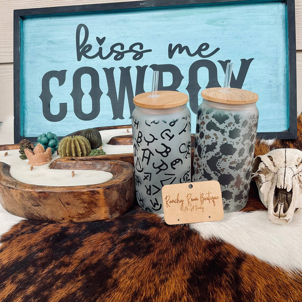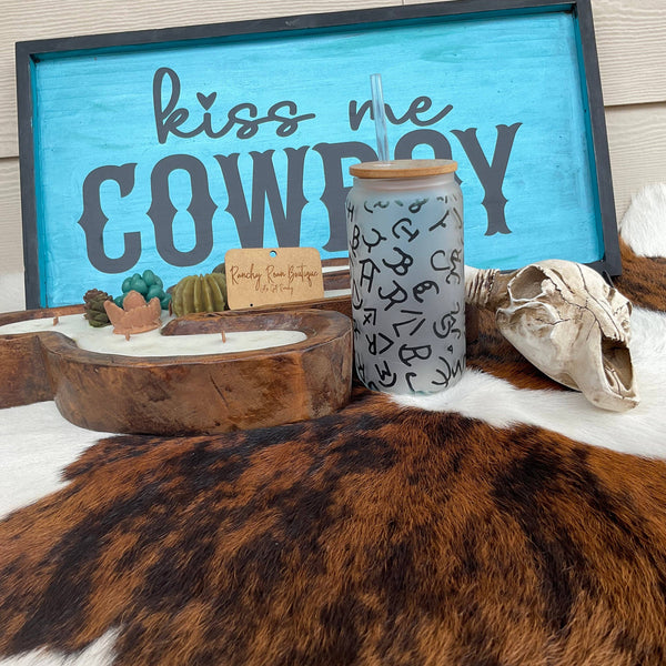 Cattle Brand Frosted Glass Western 16 oz Tumbler