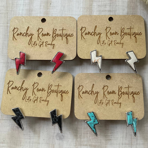 Thunder Stud Earrings Burnished Silver and Natural White Color