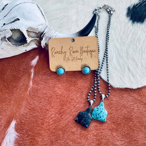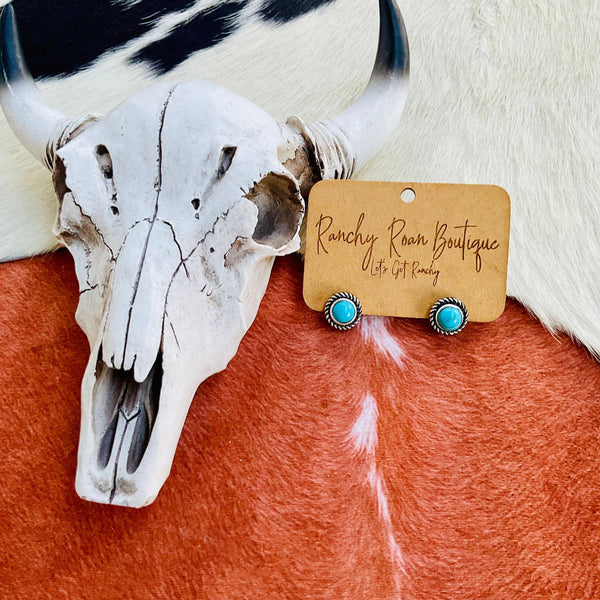Add a touch of Southwestern flair to your accessory collection with our “Western Design Turquoise Stone Stud Earrings.” Featuring burnished silver settings and striking turquoise stones, these earrings are perfect for completing any Western-inspired look. The vintage-style detailing around the stone adds just the right amount of rustic charm, making these earrings a versatile choice for both casual wear and dressier occasions.